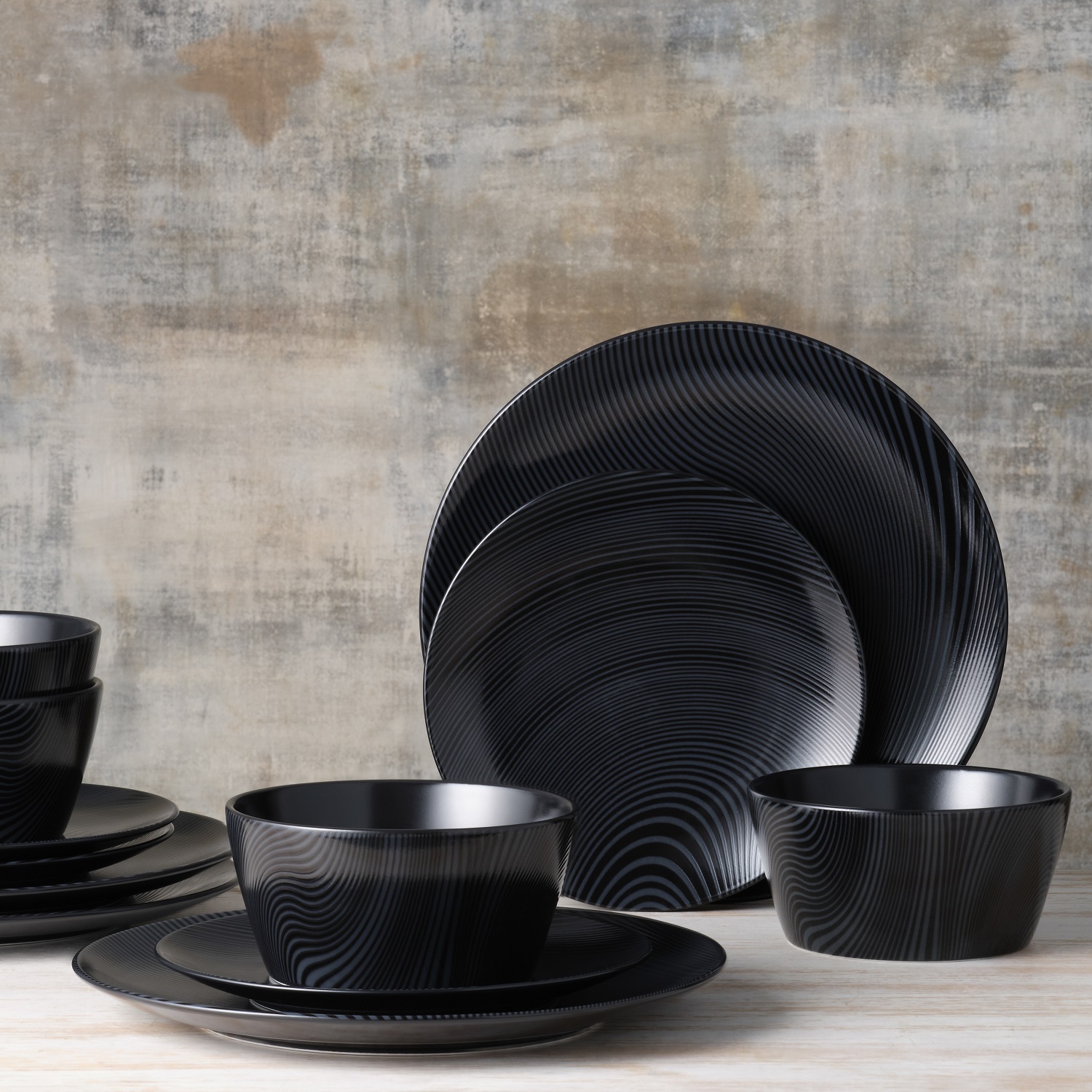 Part of the Colorscapes Collection Black on Black Dune features organic motifs subtly interpreted as a tone-on-tone surface decoration. Fabulously contemporary it is crafted from fine porcelain and features a unique textured motif that is inspired by sand dunes at dusk. Seductive on the eye Black on Black Dune is extremely versatile and can be used for all types of dining occasions and mixed and matched with the other colours in the Colorscapes Collection. It is chip resistant, dishwasher and microwave safe.