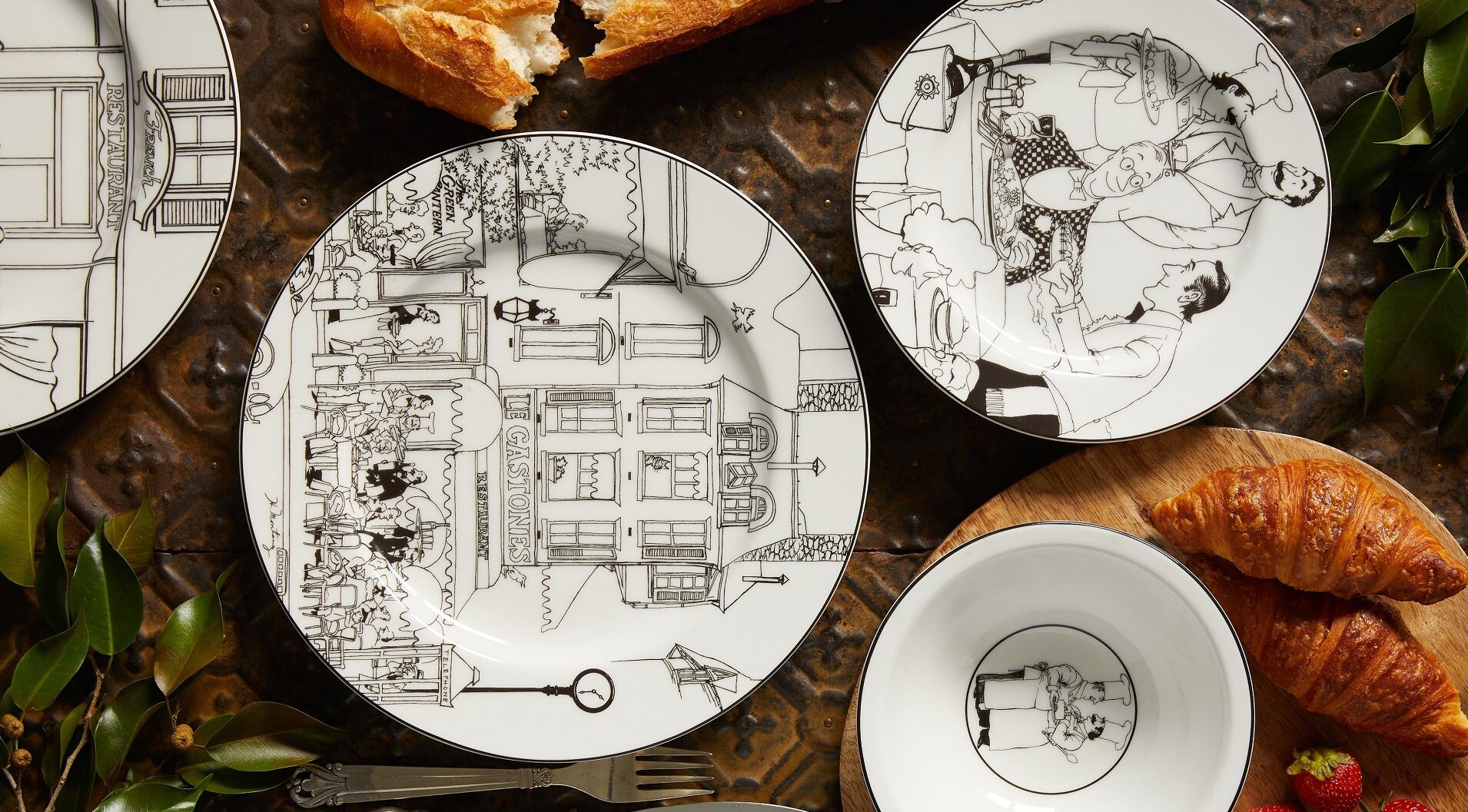 Le Restaurant is a quirky pattern that features a series of amusing black and white French bistro illustrations on a durable ivory porcelain body. This pattern is lots of fun, extremely functional and designed for everyday usage (it would make a great holiday home setting). Le Restaurant is chip resistant, dishwasher and microwave safe.